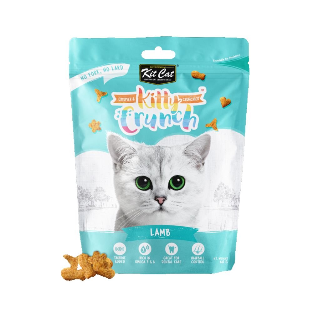 Kit Cat Kitty Crunch are created by nutritionists who are cat lovers and are made with goodness of carefully selected ingredients. KittyCrunch is produced to perfection for cats. With a range of tasty flavors and 4 fun shapes, these irresistible crunchy bites are not only delicious but help clean teeth too.